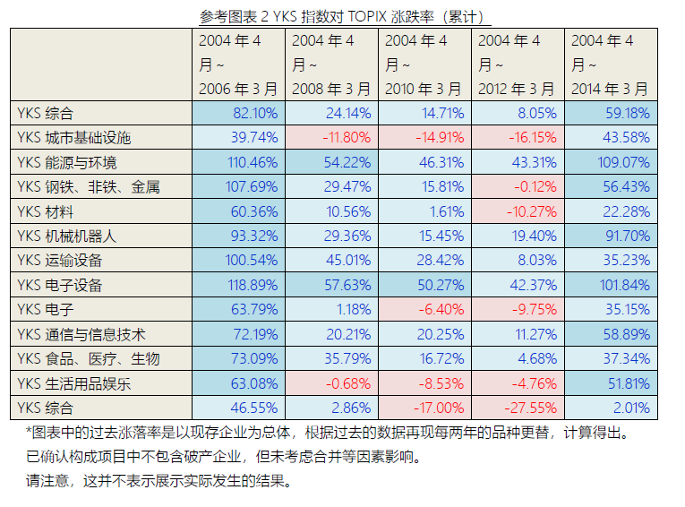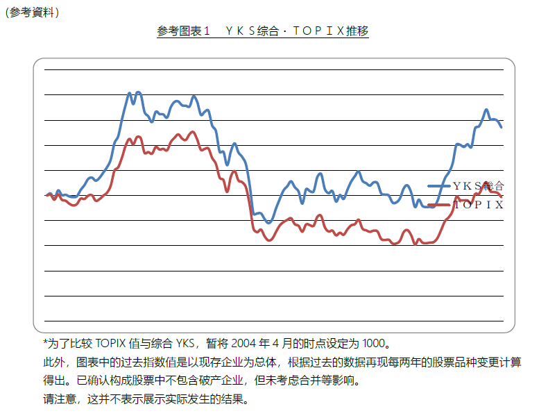 此次,以YKS分类为基础,在世界上首次开发了表示日本国技术类产业成长性和技术高增长股票价格平均推移的“YKS指数”。2014年5月起,以每月一次的频率公布。