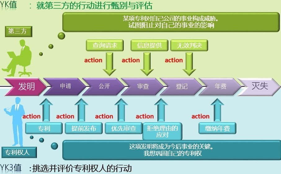 提取这些专利权人的行为(行动)并评价其成本,就可以测定出专利权人认可该专利的价值。这个想法产生的指标就是“YK3值(专利投资度指标)”。